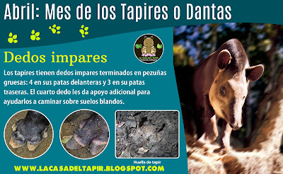 Una vez más abril es el MES DE LOS TAPIRES O DANTAS. Durante 4 semanas celebramos la existencia de esas fascinantes criaturas tropicales, compartiendo abundante e interesante información sobre su historia natural e importancia en el imaginario popular. Lo celebramos educando y promoviendo la concienciación de las personas ya que estamos convencidos que el futuro de estos animales asombrosos dependerá del amor que despertemos hacia ellos y sus hogares megadiversos.